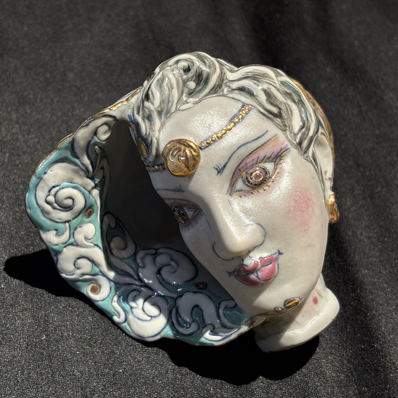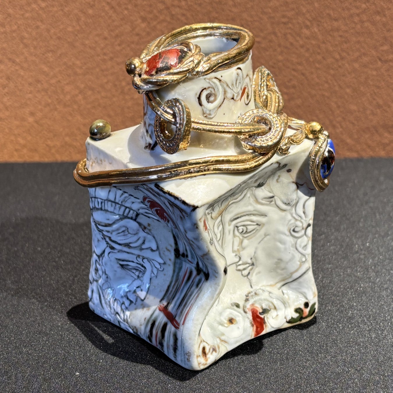 現在、石川県小松市を拠点に活動する九谷焼作家・工藤 完子氏による『-女神たち-』(~2025年11月5日[水])を開催中です。素地師としての経験を活かし、上絵の表現を深化させながら独自の世界観を築く工藤氏。オブジェや花器、酒器、ポット、カップなど約40点が並び、女性像や物語性を感じさせる作品の数々が会場を彩ります。