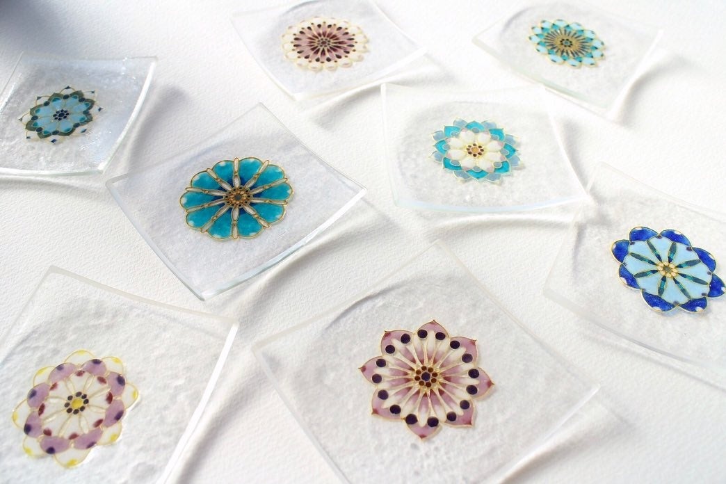 塚原氏は「ガラス胎七宝」という技法を用いて、淡い色合いとガラスの透明感が織りなす上品で柔らかな作品を手掛けています。大小さまざまな器からアクセサリーまで幅広く制作し、その繊細で美しい表現に多くの支持を集めています。