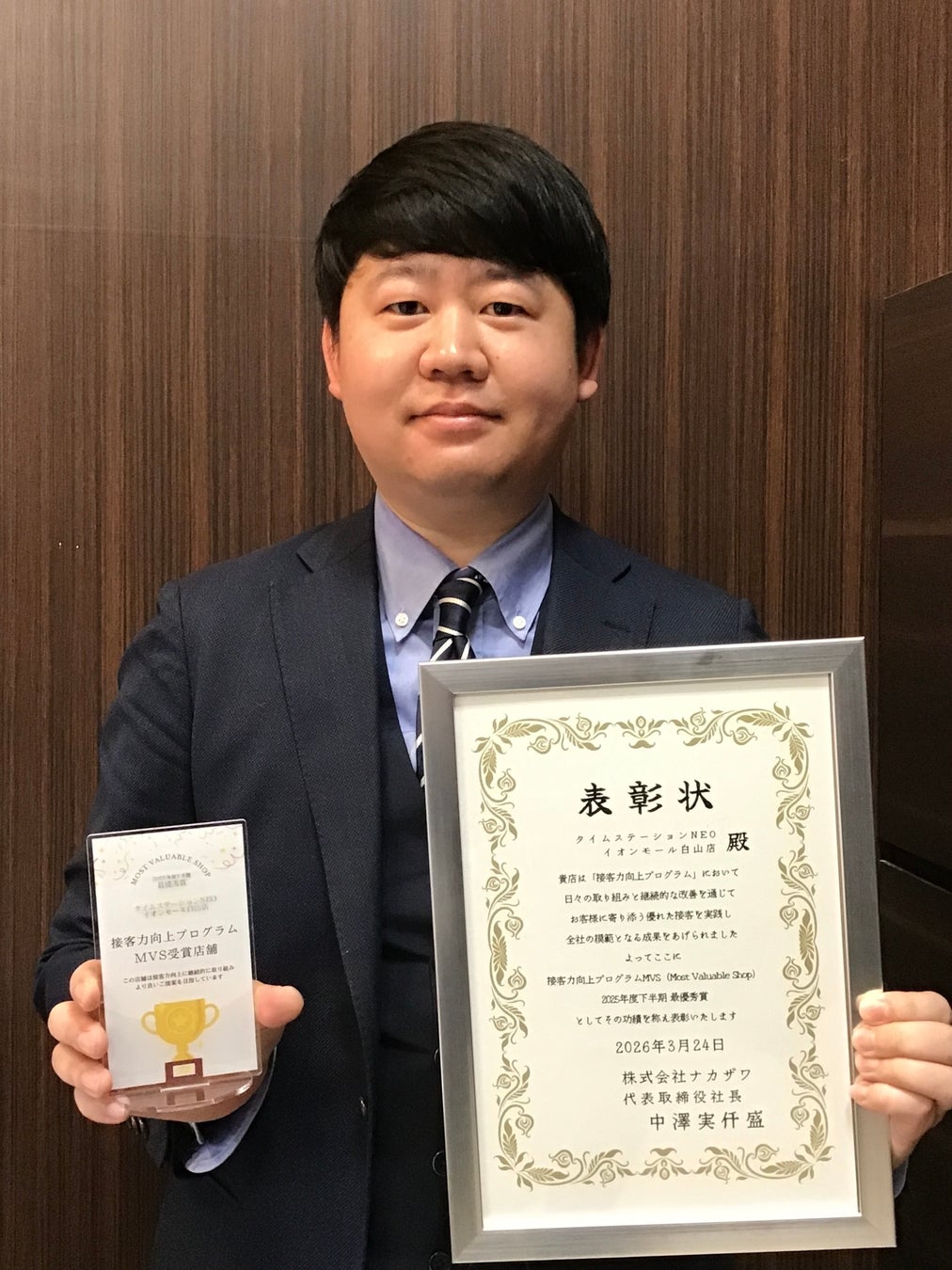 「MVPではなくMVSという“お店に贈られる賞”なので、個人ではなくスタッフ全員でいただいた賞だと思っています。まずは店舗の仲間に感謝したいです。今後も接客力の向上を軸に、お客様に支持されるお店づくりを続けていきます。」