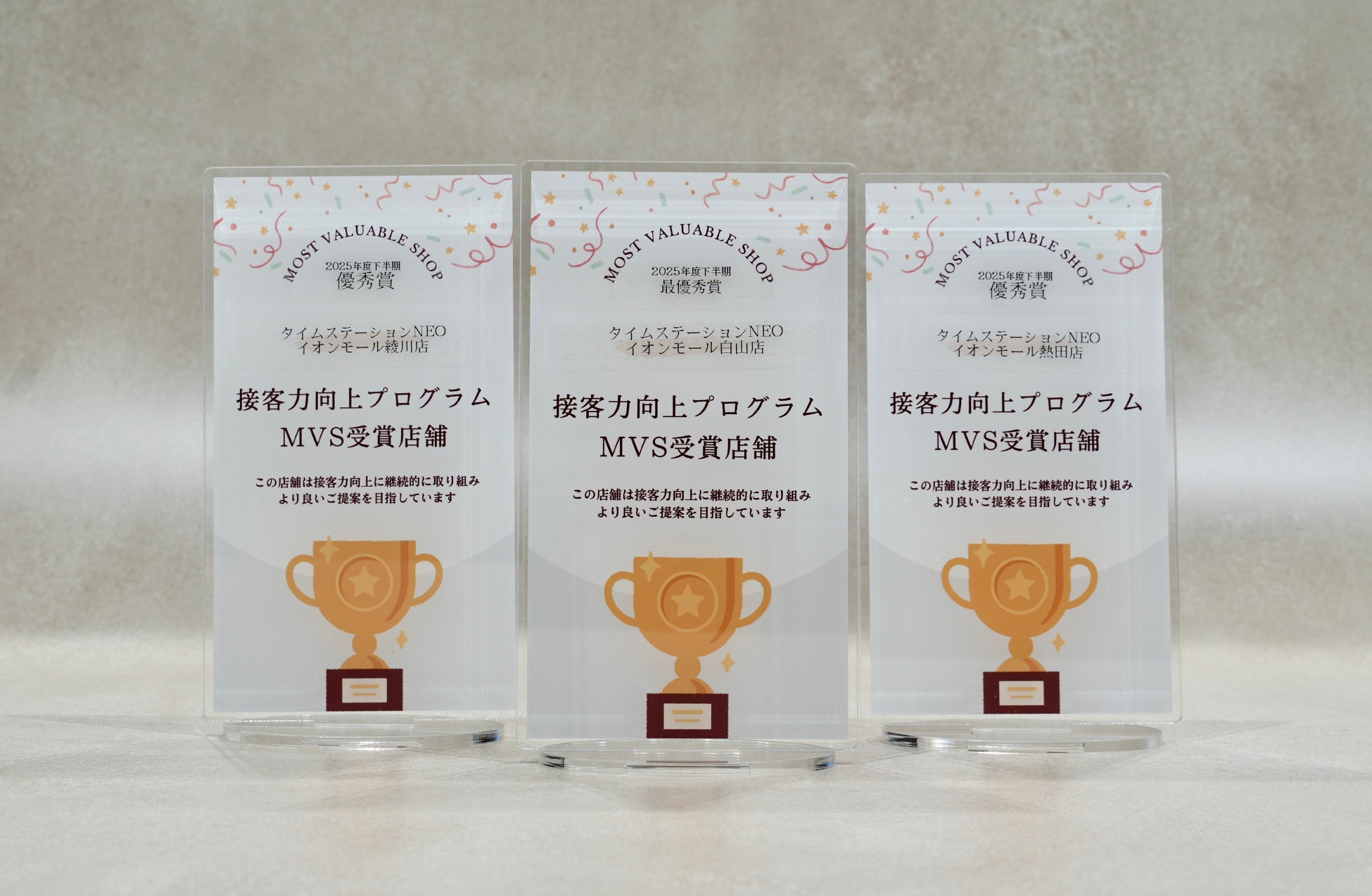 MVS(Most Valuable Shop)は、接客力向上プログラムにおいて優れた成果を上げた店舗を表彰する制度です。