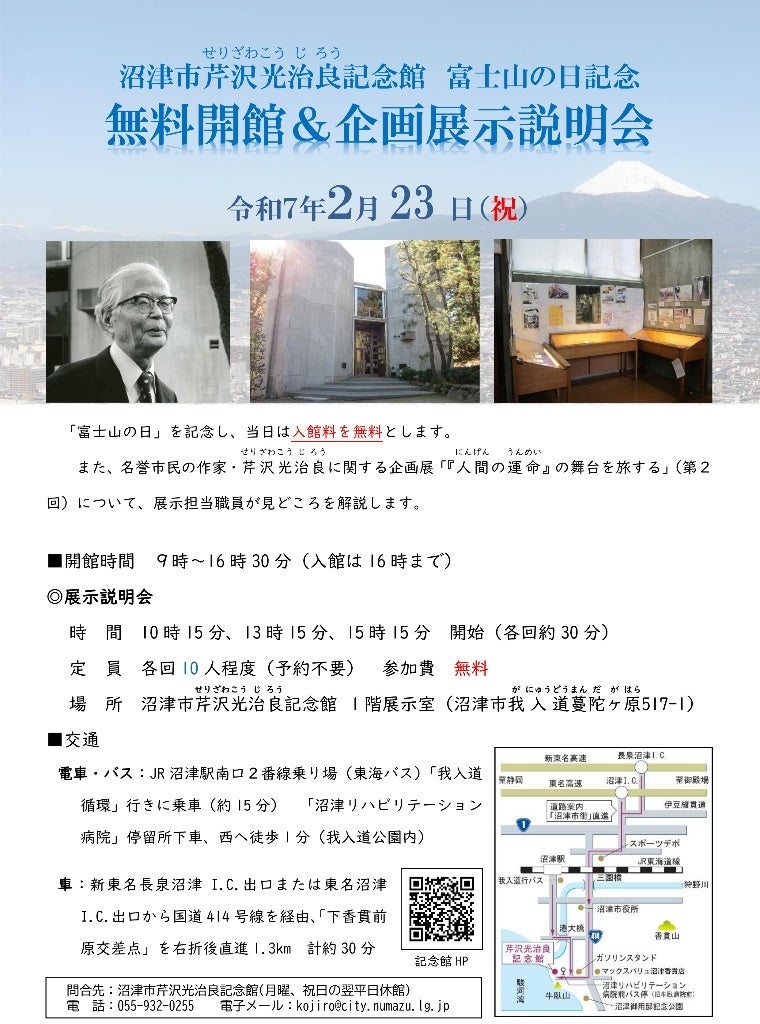 沼津市芹沢光治良記念館 「富士山の日」記念 無料開館&展示説明会の開催