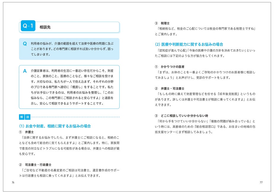 「相続をきっかけに家族の関係が壊れてしまった悲しい事例をいくつも見てきました。生前に対策をしておけばと悔いることも多いものの、専門家に相談する敷居が高いのが現実です。介護職員の方が、利用者から『終活』に関する相談を受けた際、この本をきっかけに、終活のアドバイスをしたり、専門家に相談すべき問題点を発見したりして、1人でも多くの幸せな相続に繋がることを願っております。」