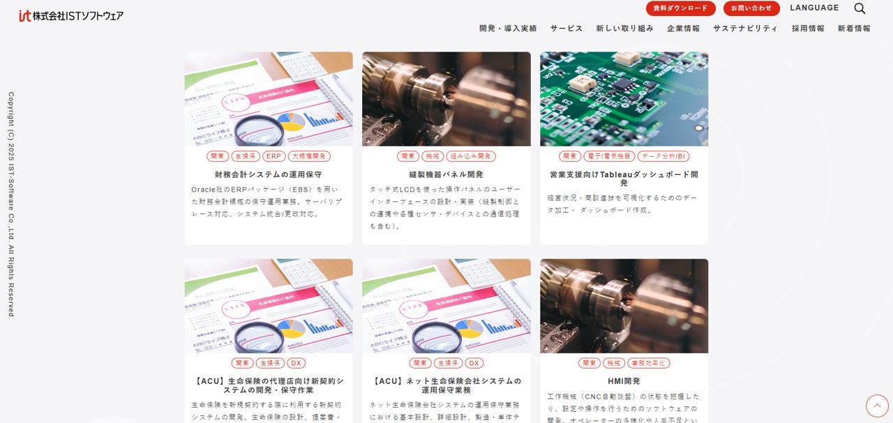 今回追加した開発・導入実績では、金融・保険・製造・データ分析など、幅広い業界・業務領域における事例を掲載しています。