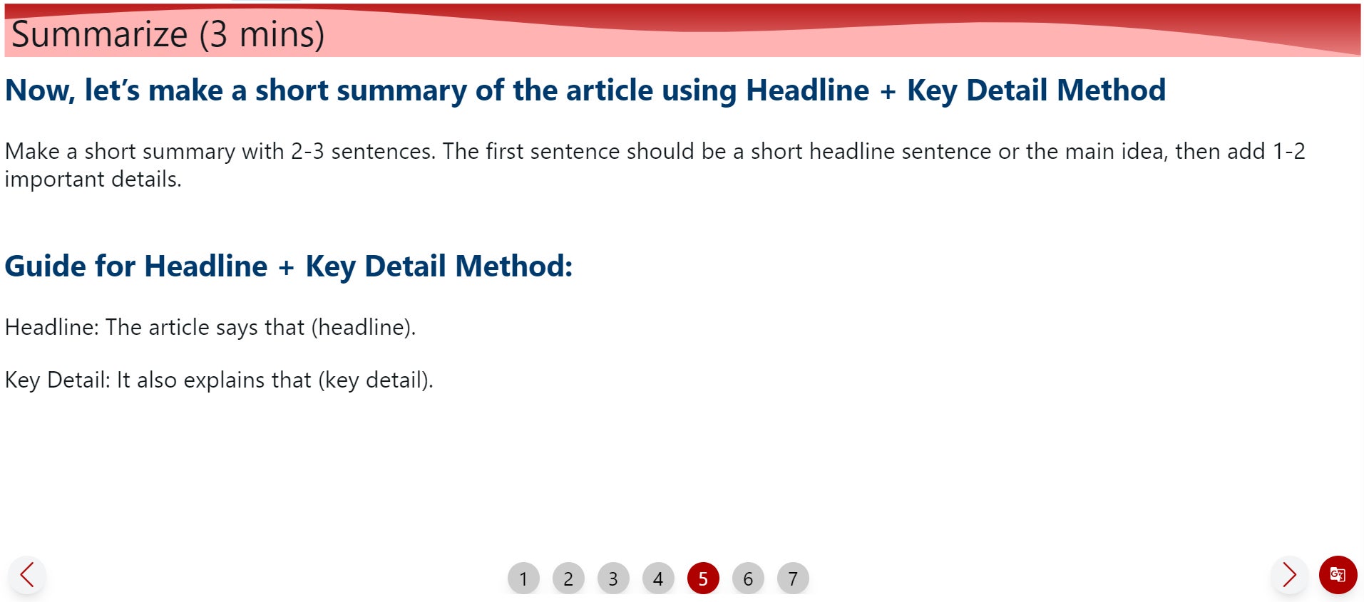 記事の内容を「見出し1文+重要な情報1〜2文」で要約。文章構成力と情報整理力を鍛えます。