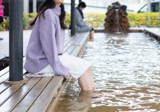会場では、2つの温泉地から運ばれた湯に、靴を脱いでそのまま浸かることが可能です。泉質や温度の違いを肌で感じる「癒しの旅の入口」として、誰でも気軽に体験いただけます。