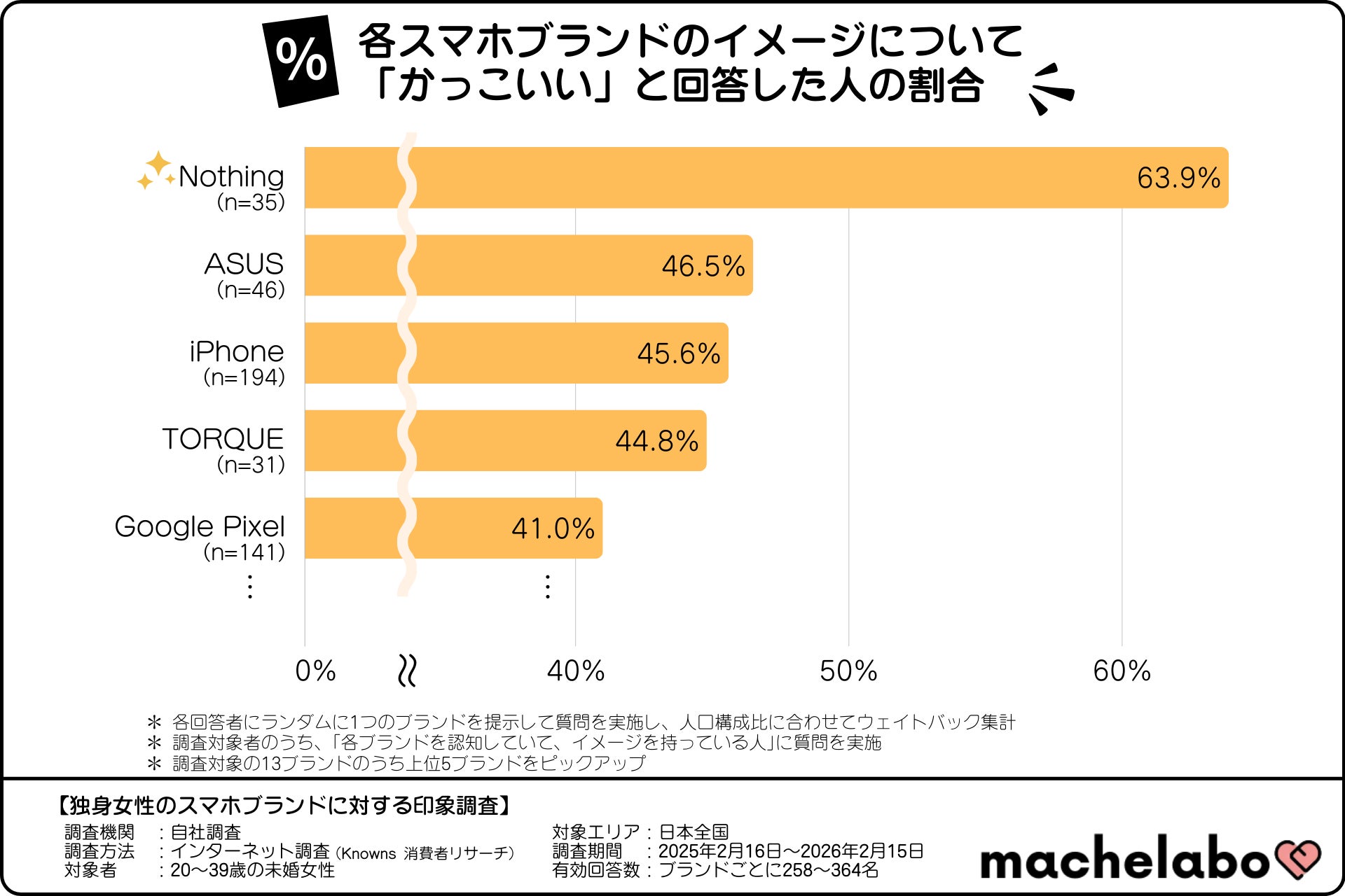そこで、株式会社マシェバラトークが運営するオウンドメディア『マシェラボ』( https://machetalk.jp/media/ )は、全国の20~39歳の未婚女性を対象に、各スマートフォンブランドに対するイメージ調査を実施しました。