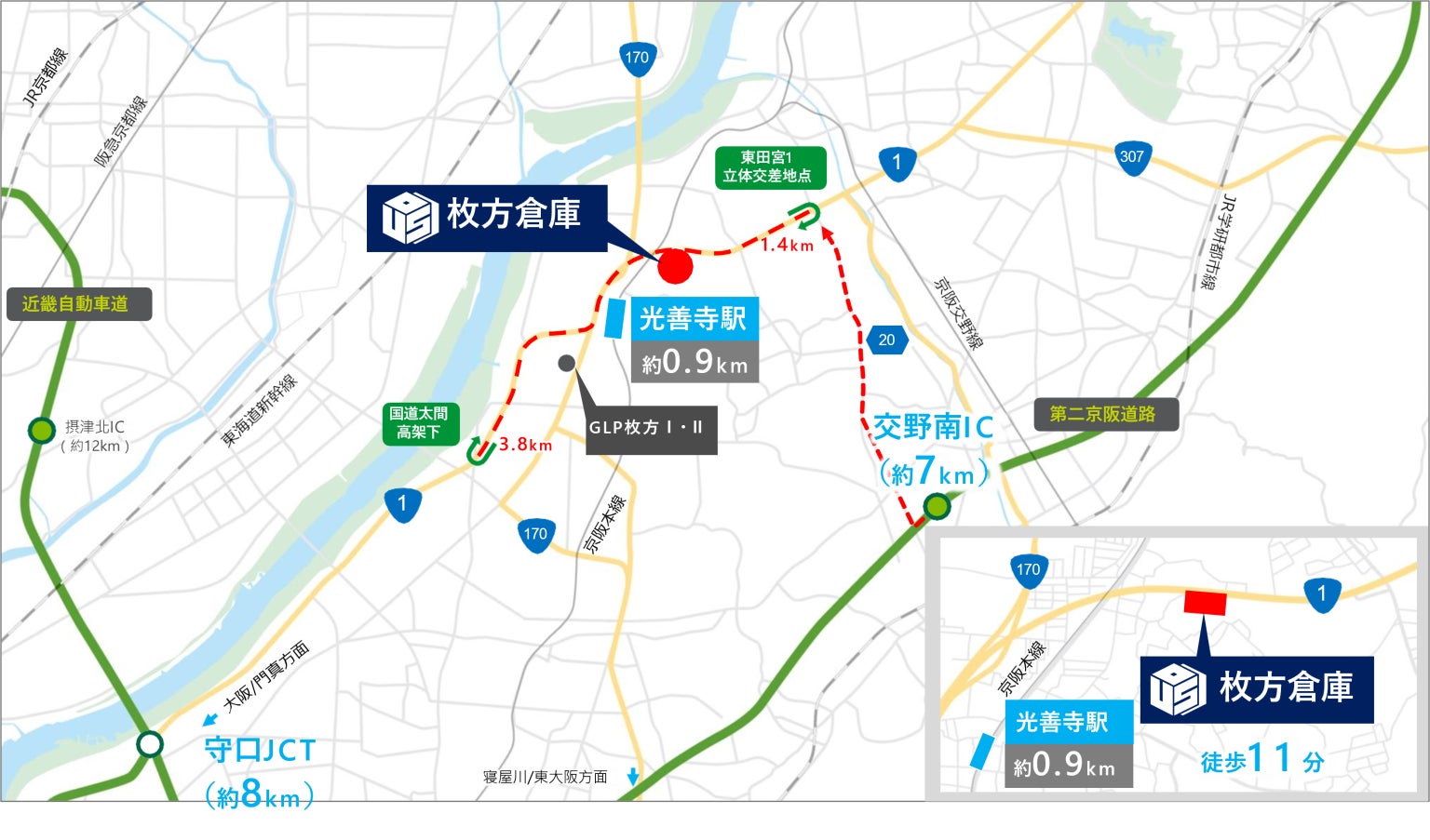 本枚方物流センターは、関西主要エリアへのアクセスに優れています。