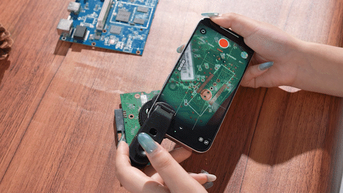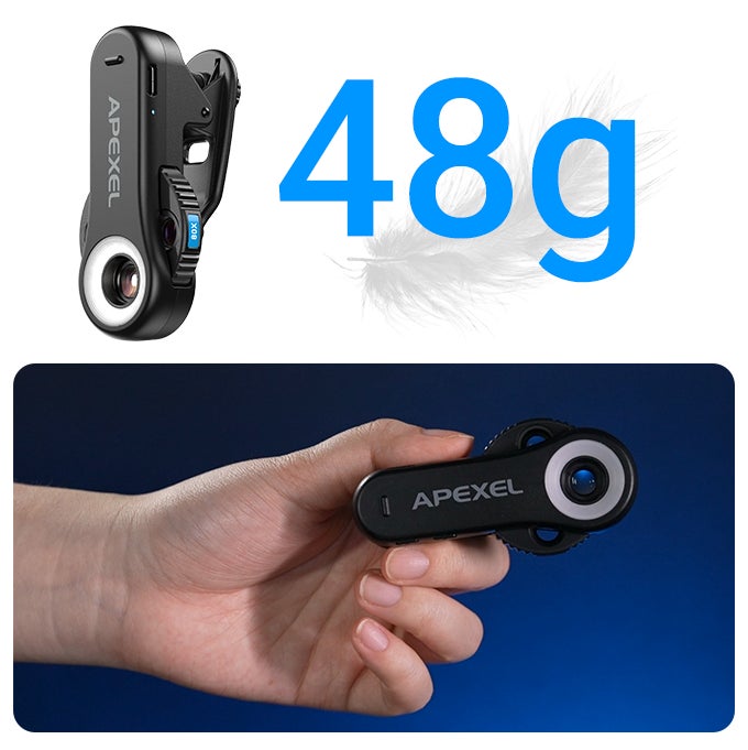 ③レンズ本体の重さはわずか48g、取り付けもかんたん!いつでもどこでもミクロの世界へ。