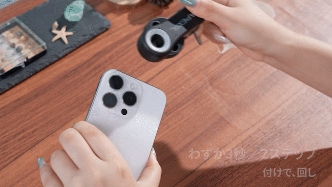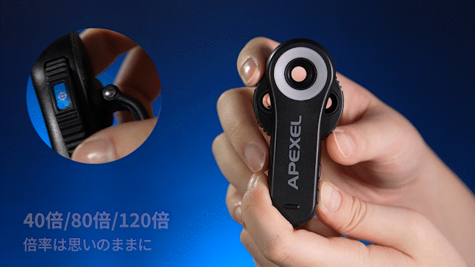 スマホ顕微鏡レンズ【MS3L】は、三段階の倍率をワンタッチで切り替え可能。