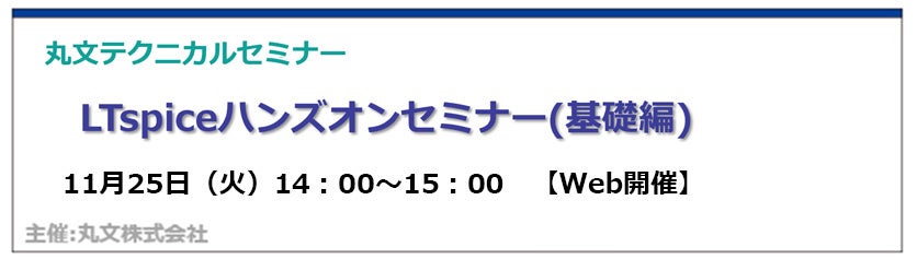 エレクトロニクス商社の丸文株式会社(代表取締役社⻑ 兼 CEO / COO︓堀越裕史、本社: 東京都中央区、以下、丸⽂)は、11月25日(火)にLTspiceを活用した電源回路のシミュレーションを解説する無料のオンラインセミナーを開催します。