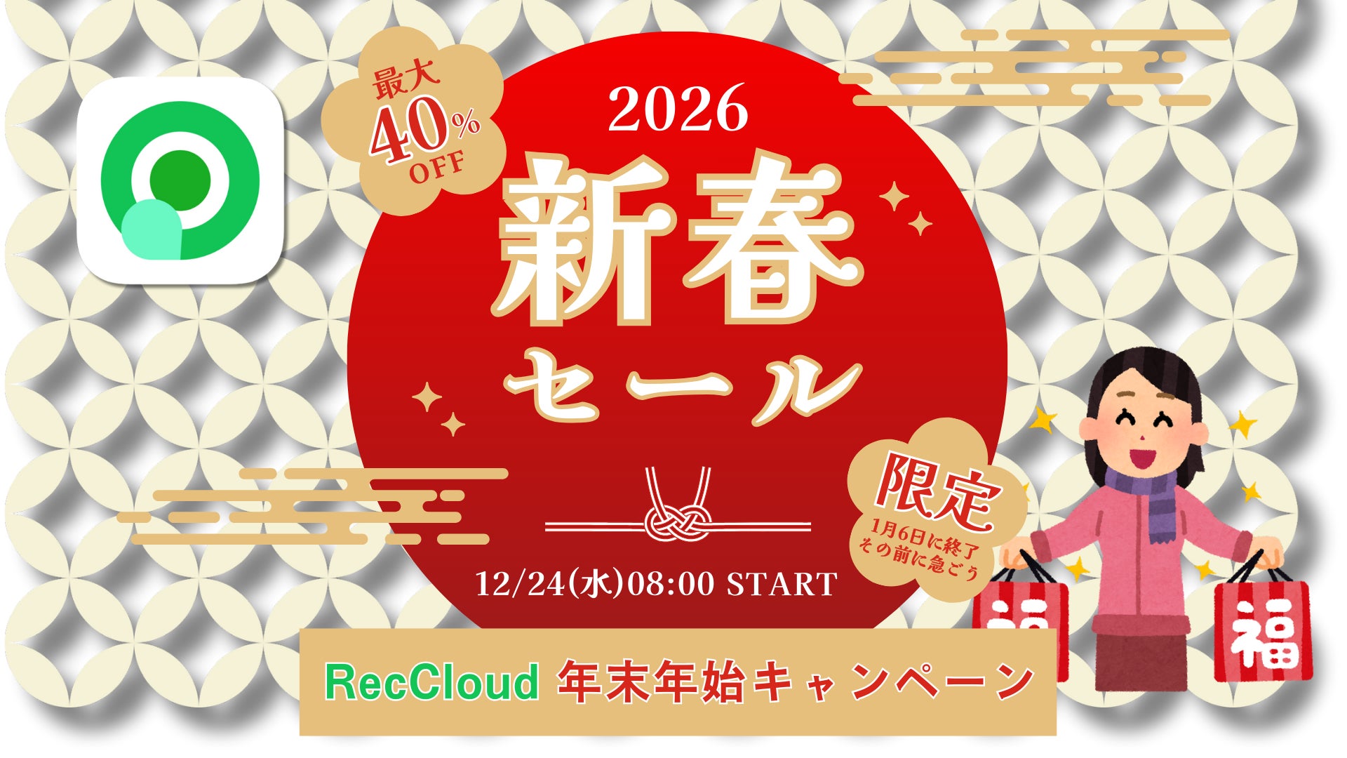 RecCloudの人気年額プランを、新年スタートに合わせて大幅割引で提供。