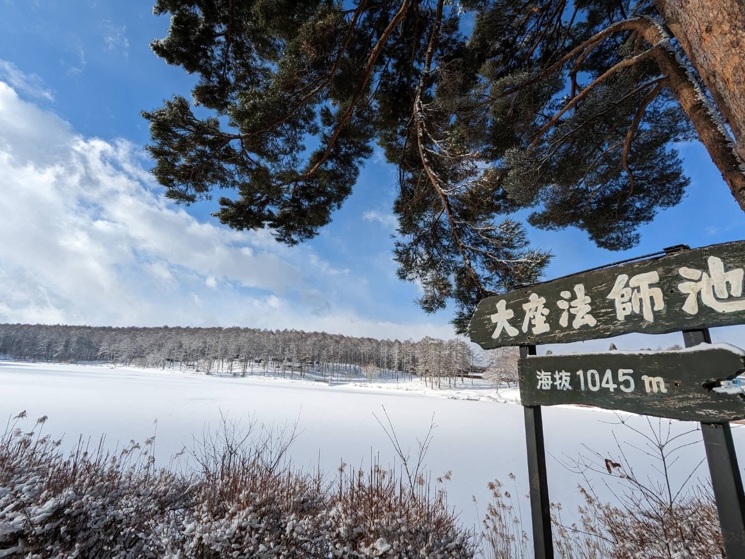 飯綱高原の大座法師池のほとりにたたずむnagano forest village。