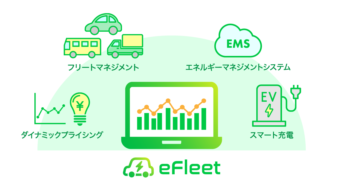 アークエルは、自社開発のEVスマート充電・運行管理システム「AAKEL eFleet」(以下、「AAKEL eFleet」)を用いて、脱炭素に向けてEVを導入する企業・自治体向けに、「ダイナミックプライシング」「フリートマネジメント」「EMS」などのシステムと「スマート充電」を組み合わせ、EV充電を最適化、自動で一括管理するサービスを提供しています(図1)。