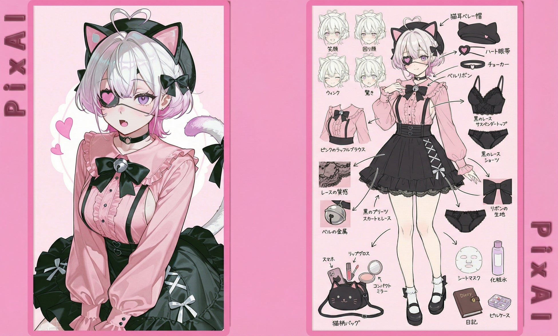 AI 二次元創作プラットフォーム「PixAI」はこのたび、キャラクターのデザインと設定を整理・表現できる新機能 「キャラクターシート生成機能」 の提供を開始しました。