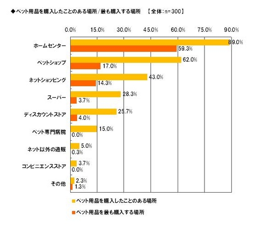 ■ペット用品を最もよく購入する場所 約6割が「ホームセンター」