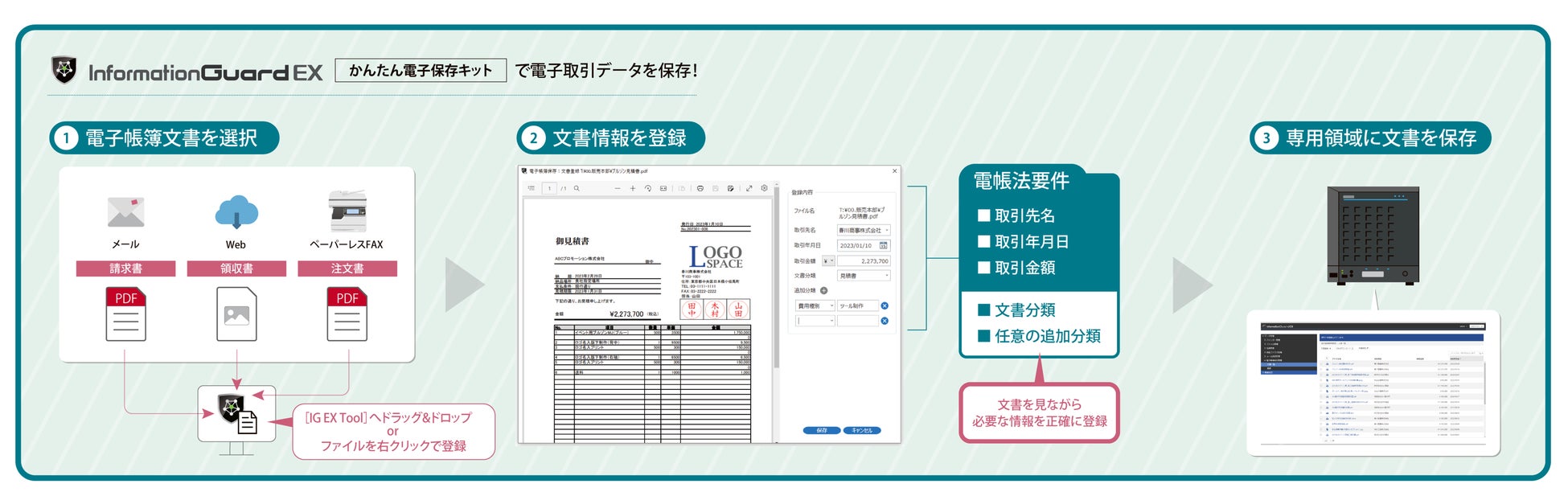 電子取引データの手軽で確実な電子保存を支援する「InformationGuard EXかんたん電子保存キット」を発売