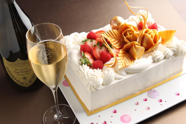 ドンペリニョンとお二人だけのスペシャルケーキをご用意、
