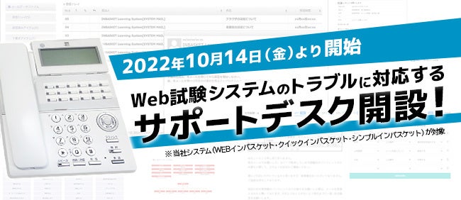 株式会社インバスケット研究所で提供しているWeb試験システムにおいて、人事担当者の負担を軽減し、確実に試験を行えるよう、受験者一人ひとりのトラブルに対応するサポートデスクを開設いたしました。