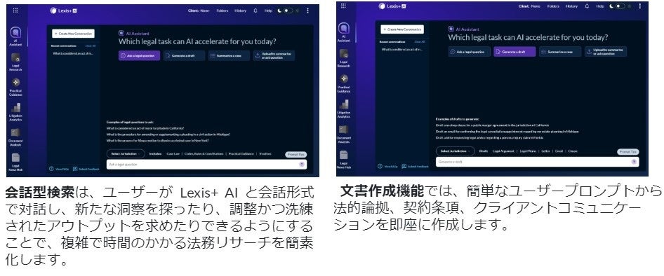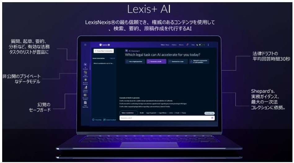 レクシスネクシス、会話型リーガルリサーチ/要約/文書作成機能を搭載リーガルオペレーションズDXを推進する生成AIトータルソリューション「Lexis+ AI™」を3月21日に日本で提供開始
