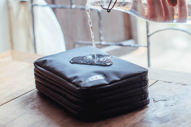 - 防水ポケットの素材 - ポケットの使い勝手を考慮し、スマホのケースなどに使われる、衝撃に強く、伸縮性のある熱可塑性ポリウレタン(TPU)を採用。