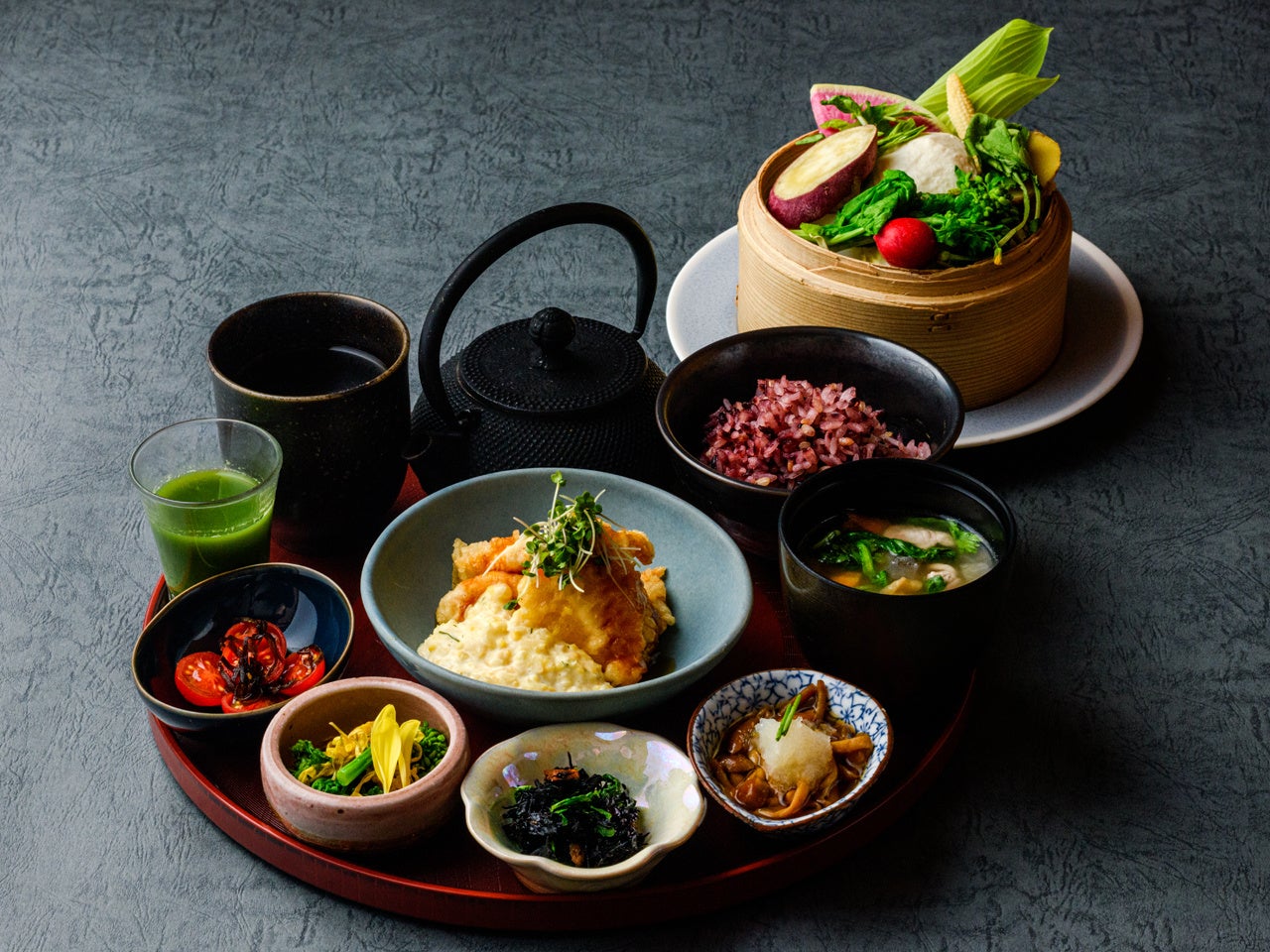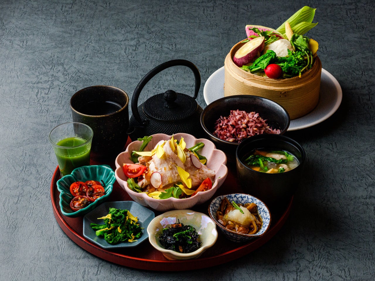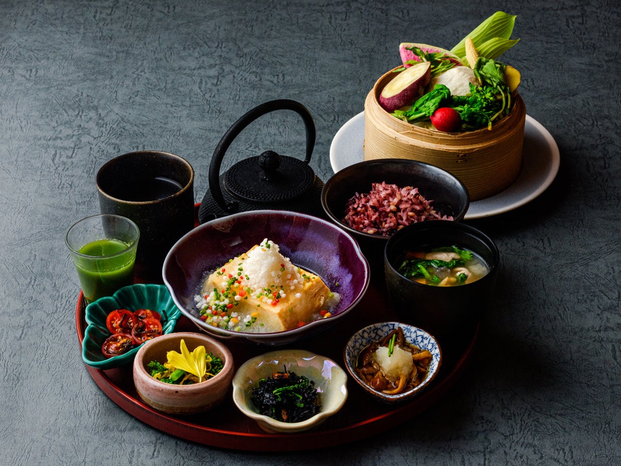 ディナータイムは「野菜とおぼろ豆ふのせいろ蒸し」がすべてのメニューに加わり、ランチタイムには追加することが可能です。