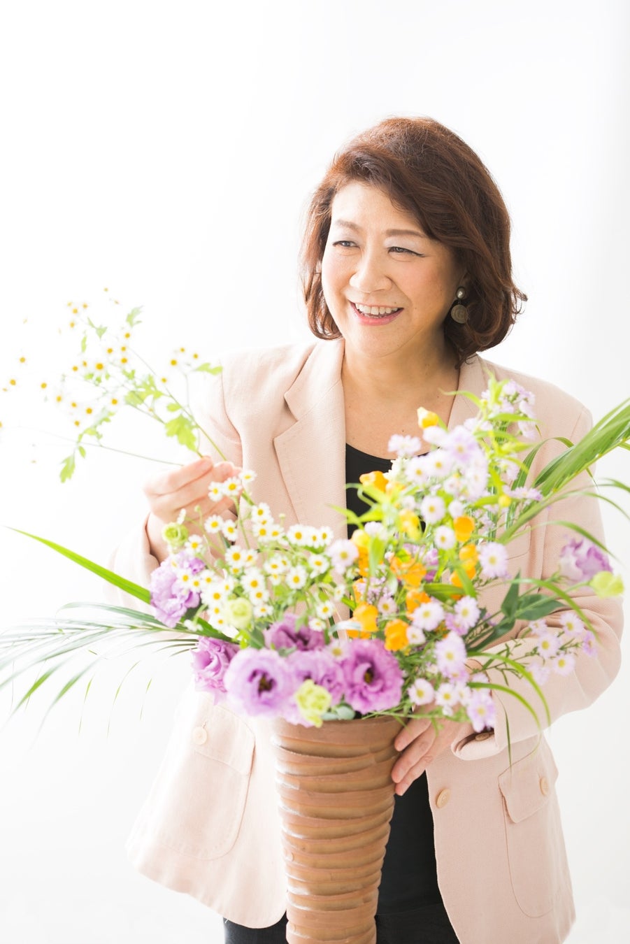 また、時代とともに変化してきた草月のいけばなは、それぞれのご家庭で楽しむことはもちろん、ウインドーディスプレーや舞台美術など、社会のあらゆる空間に植物表現の美と安らぎをもたらしています。