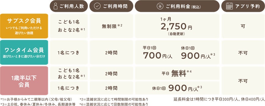 全国でも珍しいサブスク会員制を設けています。サブスク会員制の魅力は、日常の公園のように利用料を気にせず、ご利用いただくことができます。