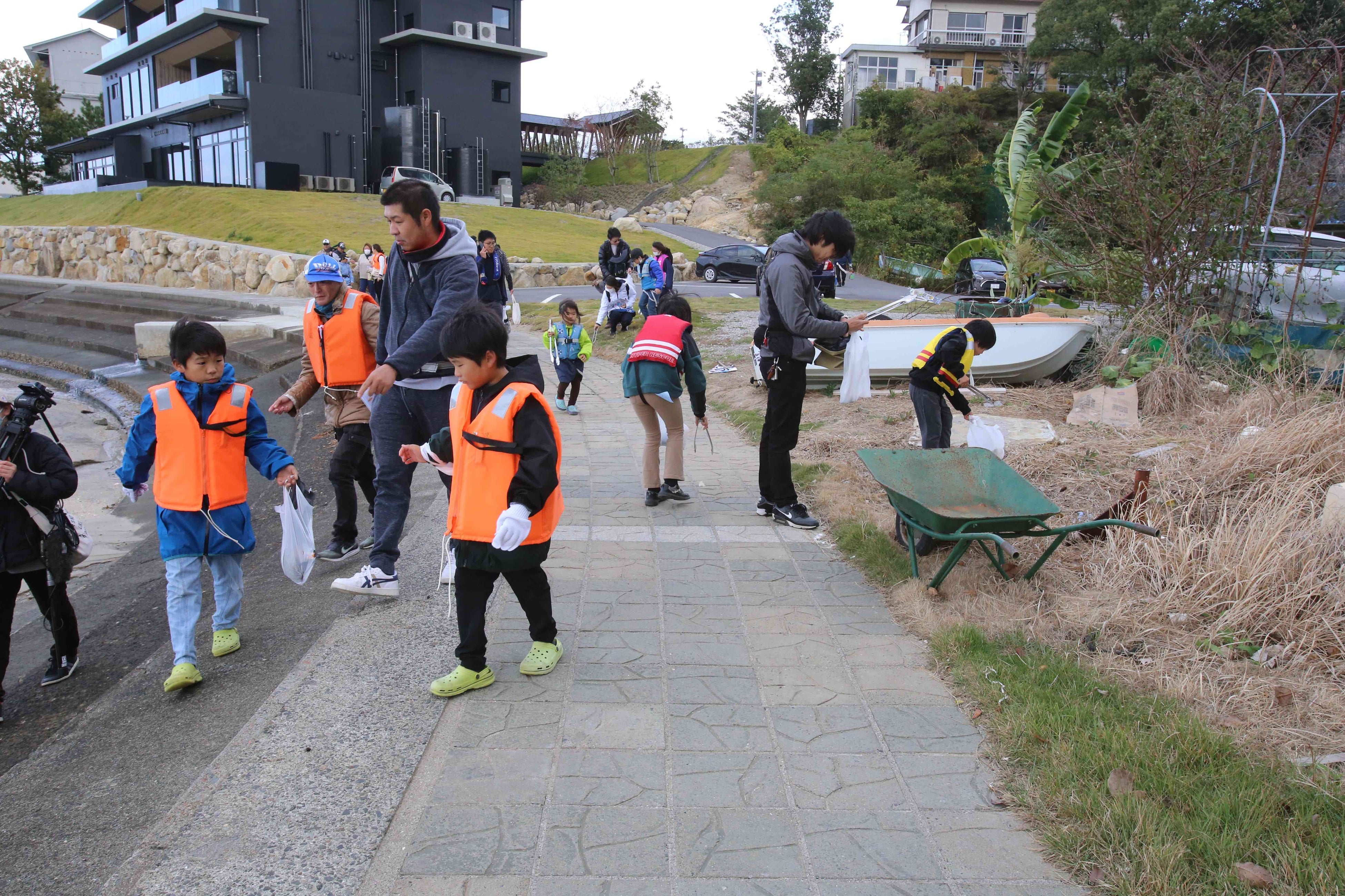 ファミリーが釣り大会に参加 ゴミ拾いも実施