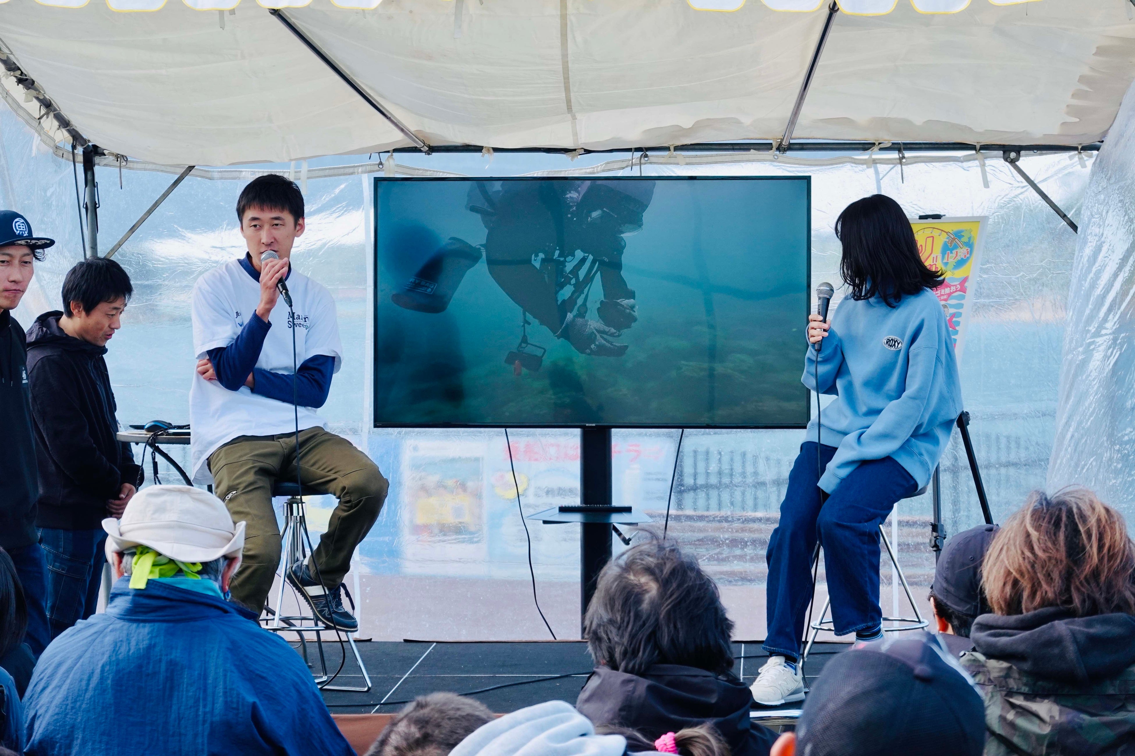 土井さんは事前に撮影した上天草の海中映像を公開し、「本当はゴミがある様子を撮りたかったが、ほとんど無かった。メバルなどの魚がたくさんいた」と、上天草の海のきれいさや魚の多さについて語りました。
