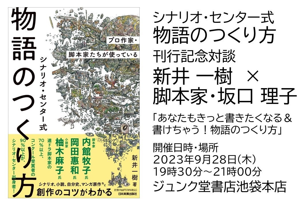 『シナリオ・センター式 物語のつくり方』を上梓した新井一樹さんとシナリオ・センター出身の脚本家・坂口理子さんをお迎えし、出版記念対談を開催します。