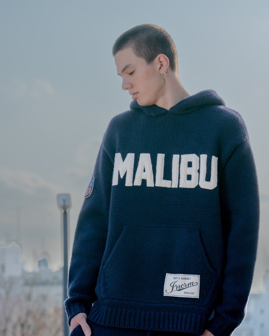 今回のコラボレーションは<INCRM>のユニセックスでリラックス感ある加工を施したオリジナルのニットアイテムをベースに、フロントには<A Love Movement>のLAの西海岸を彷彿させるカシミア素材であしらわれた「MALIBU」のフレーズが並び、スマイルパッチをはじめとしたハッピーでポジティブなアイコンをカスタムすることが可能です。価格はフーディー140,000円(税込)〜、ハーフパンツ58,000円(税込)〜(共にALMコラボ)となる。