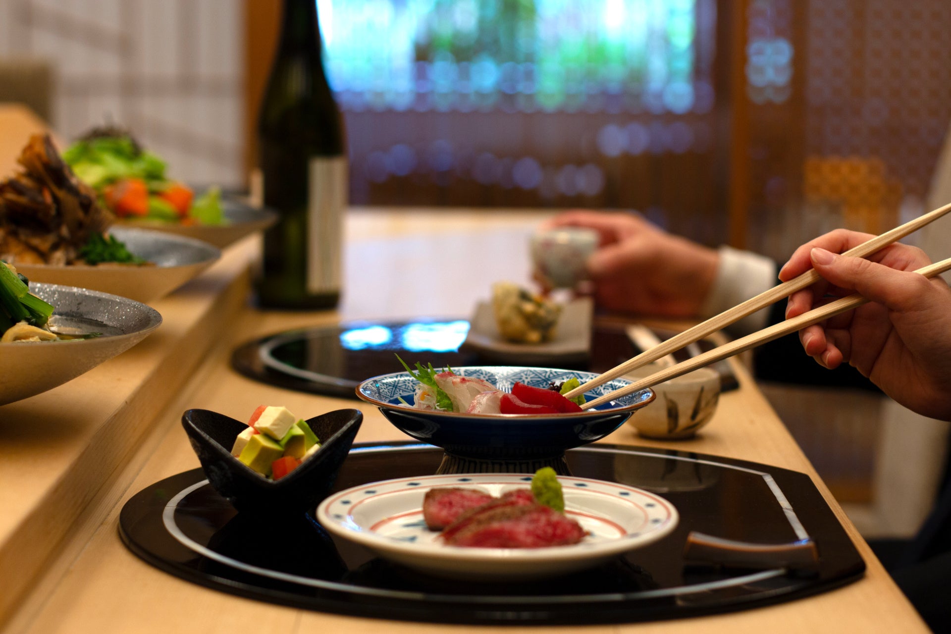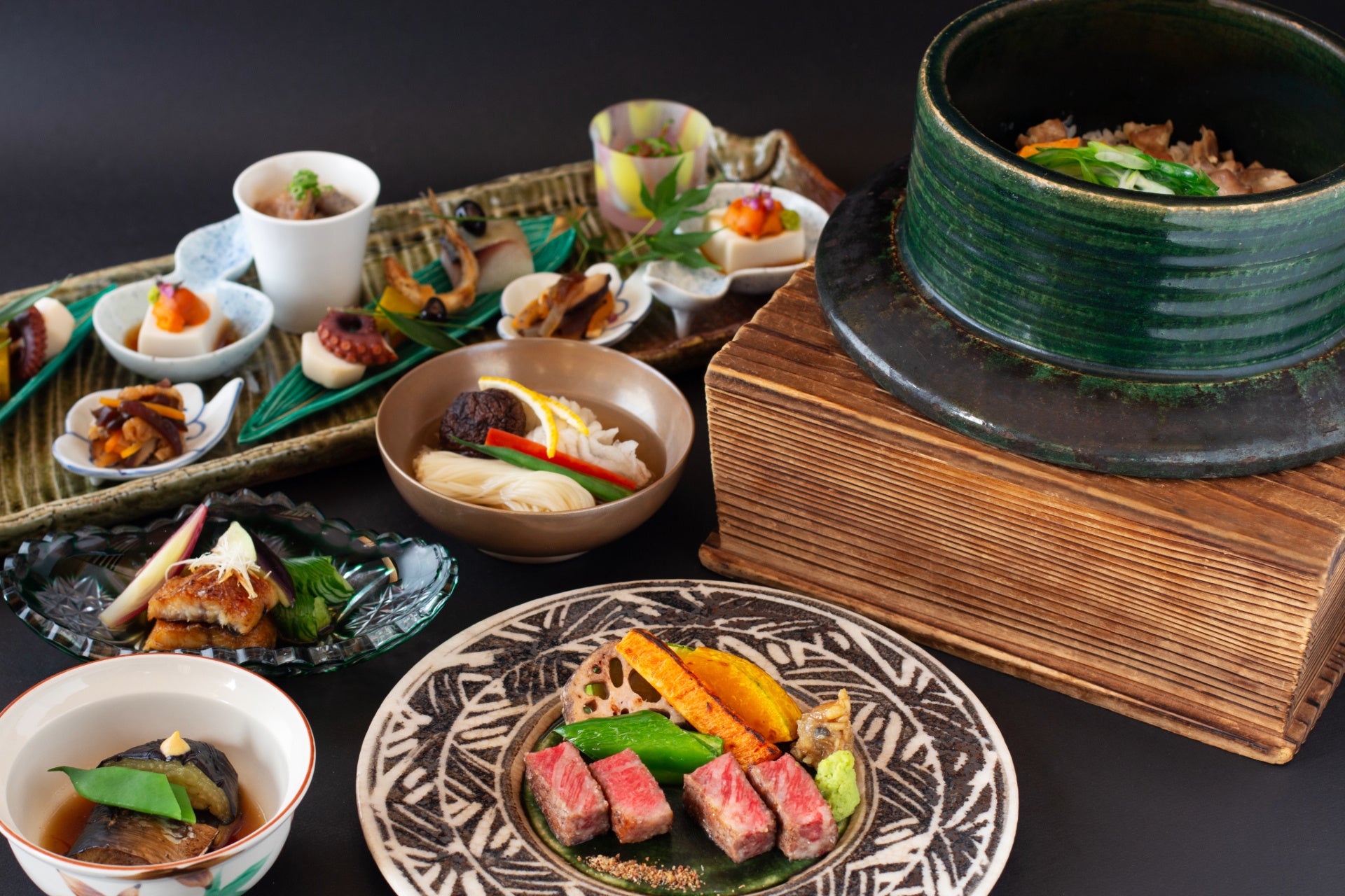 三大和牛の一つ近江牛と淡路牛の中でも希少な淡路ビーフの地元和牛食べ比べや、旬の鱧に鰹など地の利を活かし鮮度にこだわった食材を使用し様々な調理法で、関西の食の魅力を表現いたします。