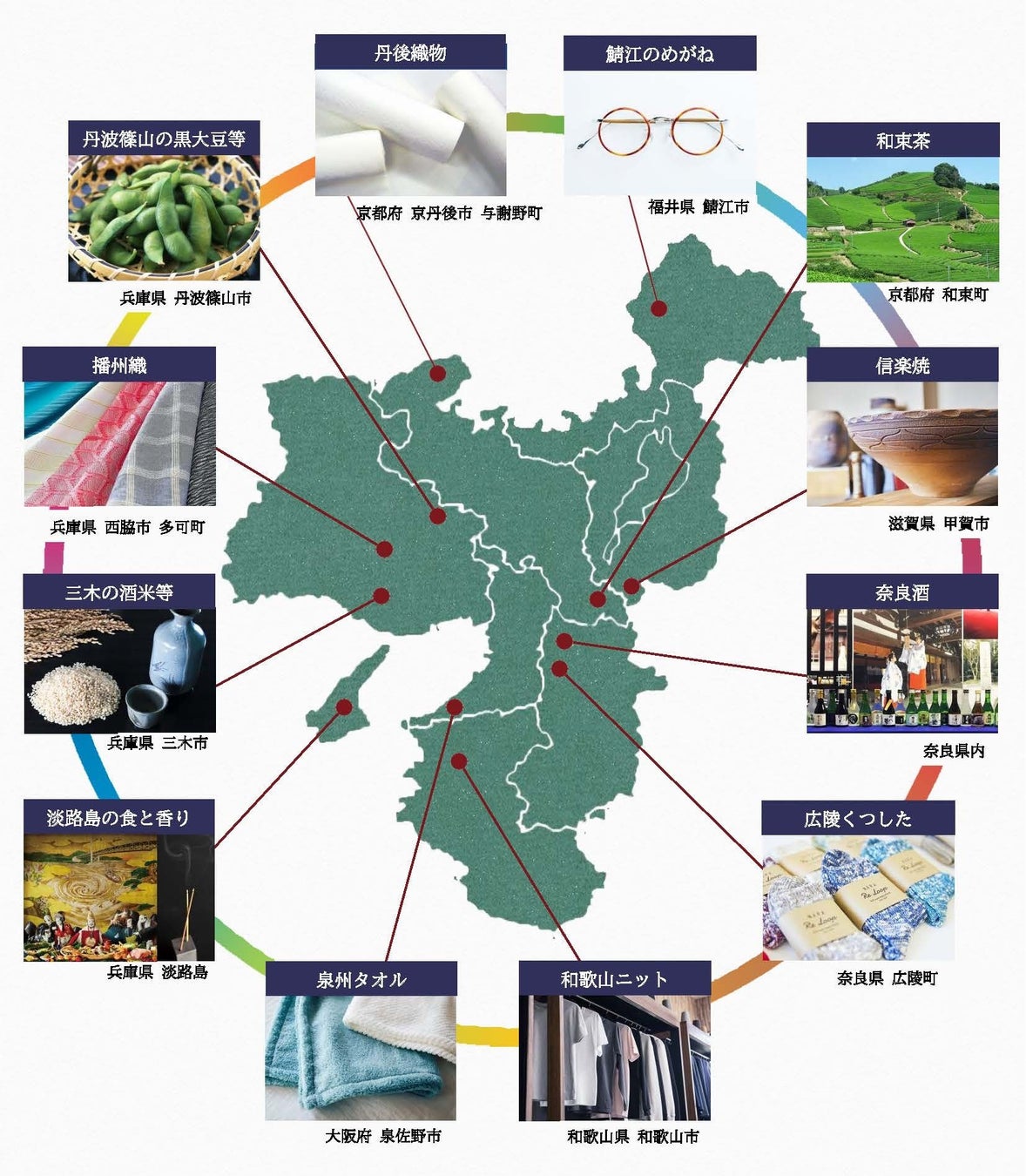 フェア期間中店内ホワイエには、現代に紡がれた伝統工芸品や生産品など近畿経済産業局が支援する関西12地域ブランドの商品をご覧いただけます。関西の食の魅力発信にとどまらず、生産地を訪れるきっかけを提案します。