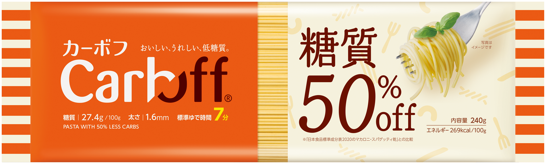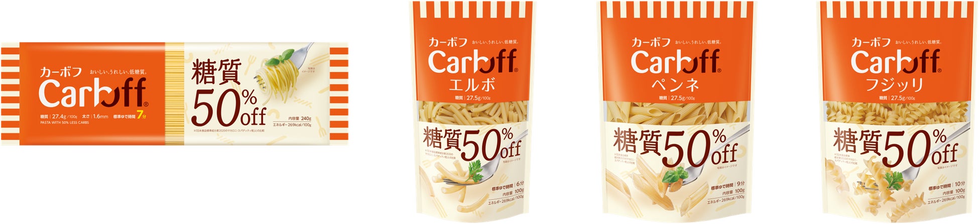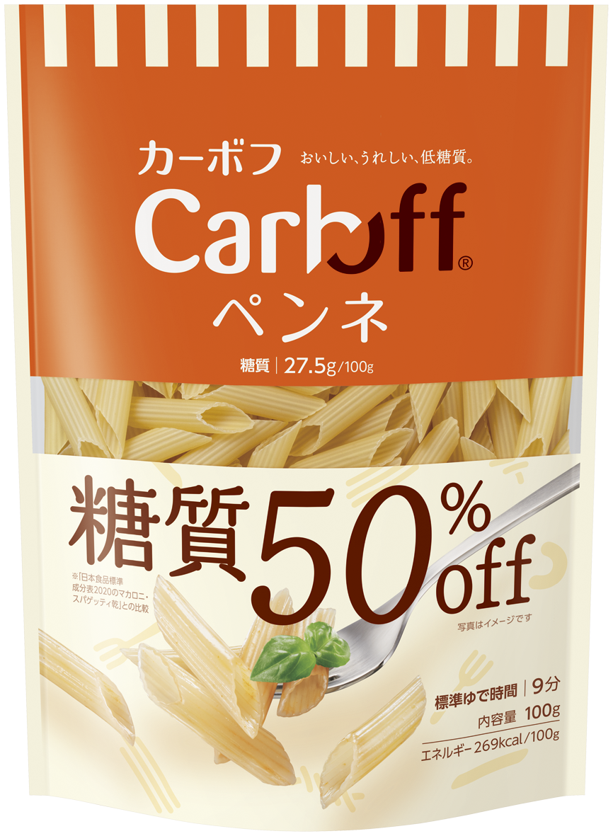 糖質50%オフ(※)でありながら、パスタらしい食感をお楽しみいただける低糖質パスタ『Carboff』シリーズは、ロングパスタ・ショートパスタともに多彩なラインナップを取り揃えています。