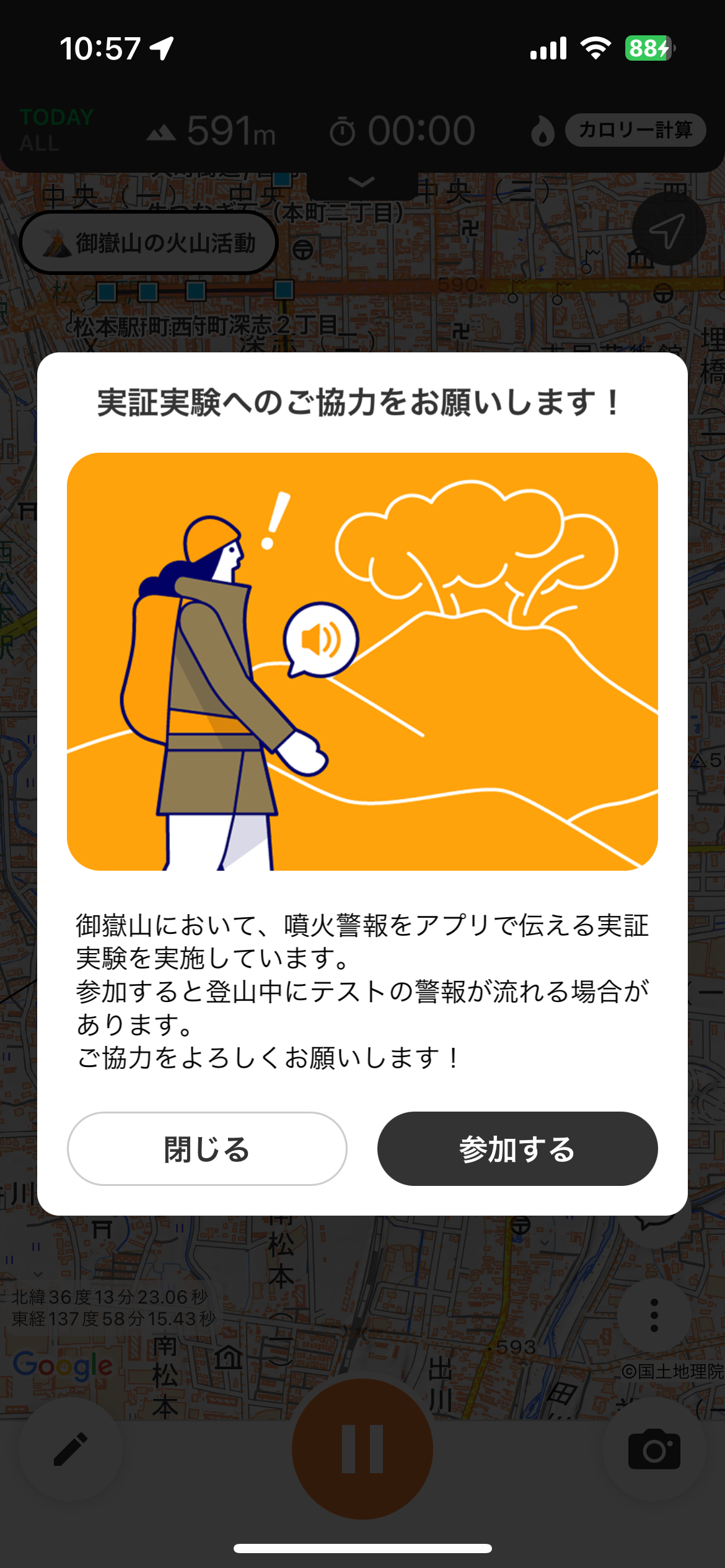 本実証実験は長野県の公募「登山アプリによる火山情報発信に関する実証実験業務」に基づくものです。