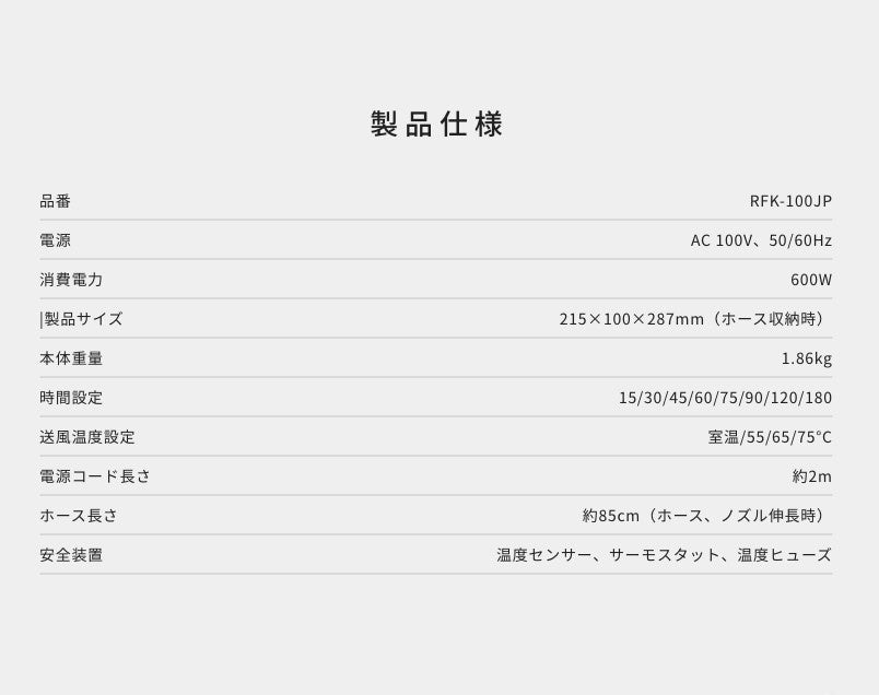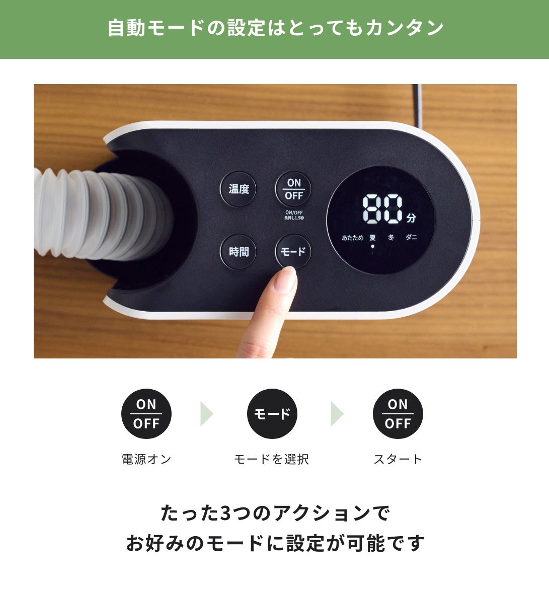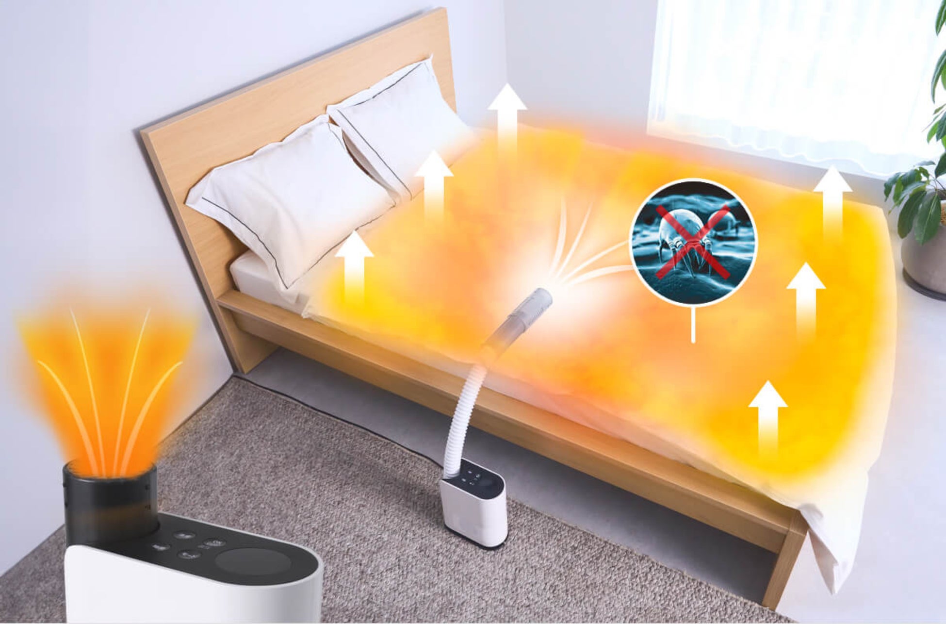 ・最大75℃の高温風で、ダニを30分以内に99.9%死滅させることが可能。