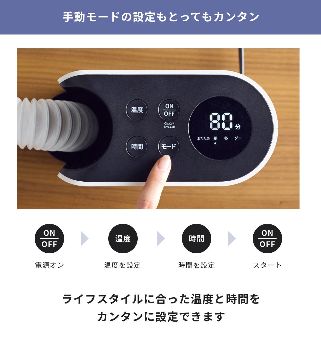 ②「ふとん」だけでなく家中マルチに活躍できる手動モード