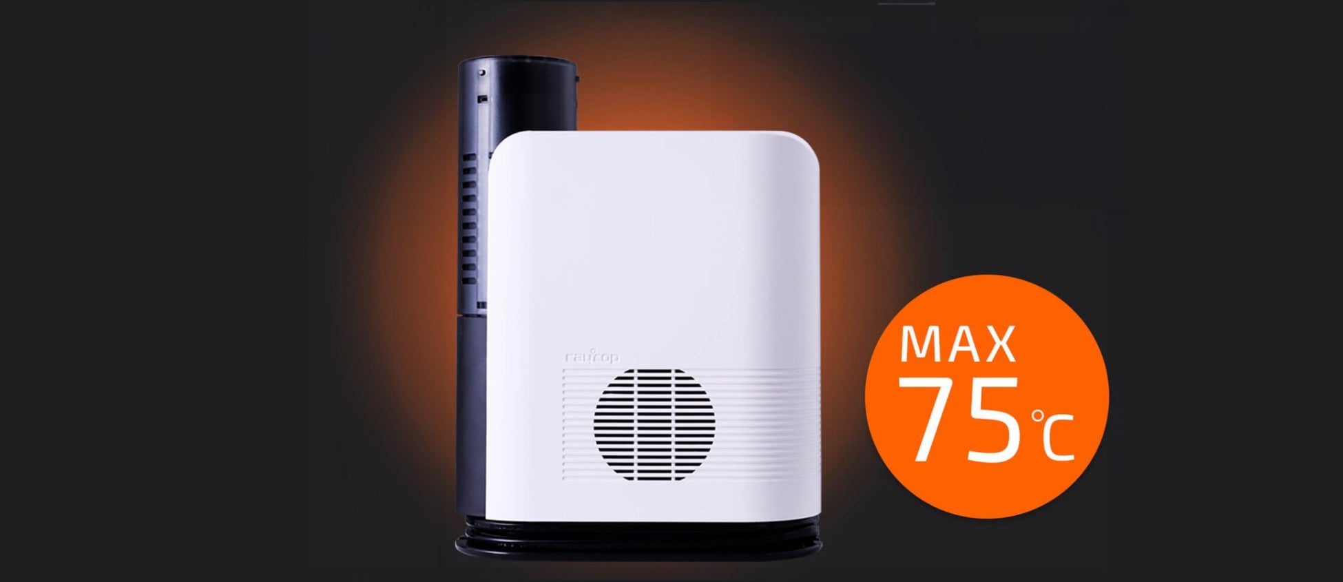 消費電力がたった600Wにもかかわらず最大温度75℃の温風を出すことができる、ローコスト、ハイパフォーマンスな経済的かつ環境に優しい製品です。