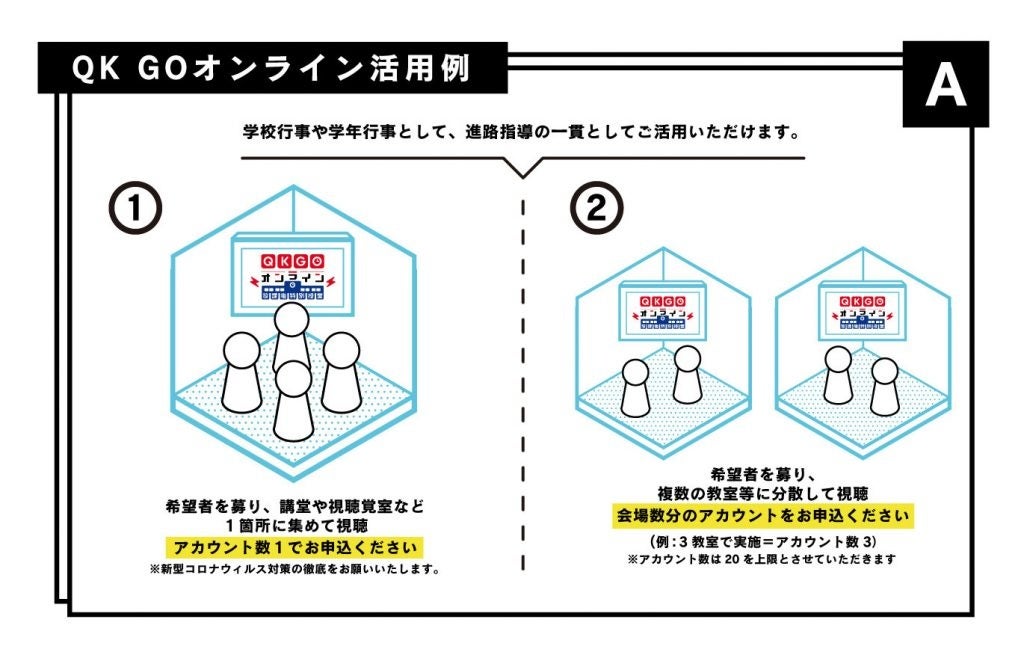 2020年以降、新型コロナウィルス感染症の拡大に伴い活動を休止しておりましたが、 QuizKnockがコロナ禍の今できる講演・交流の新たな形を検討した結果、2021年3月には「QK GOオンライン」として、リモートでのQK GOを実施しました。