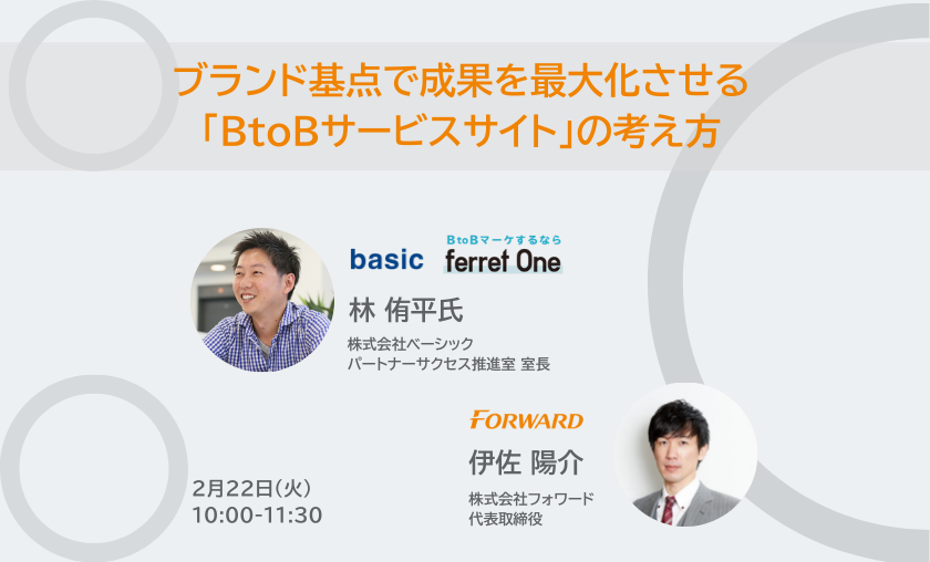 【ブランド基点で成果を最大化させる「BtoBサービスサイト」の考え方】 株式会社ベーシック(ferret One)林侑平氏をゲストに迎えた特別セミナーを2/22(火)開催