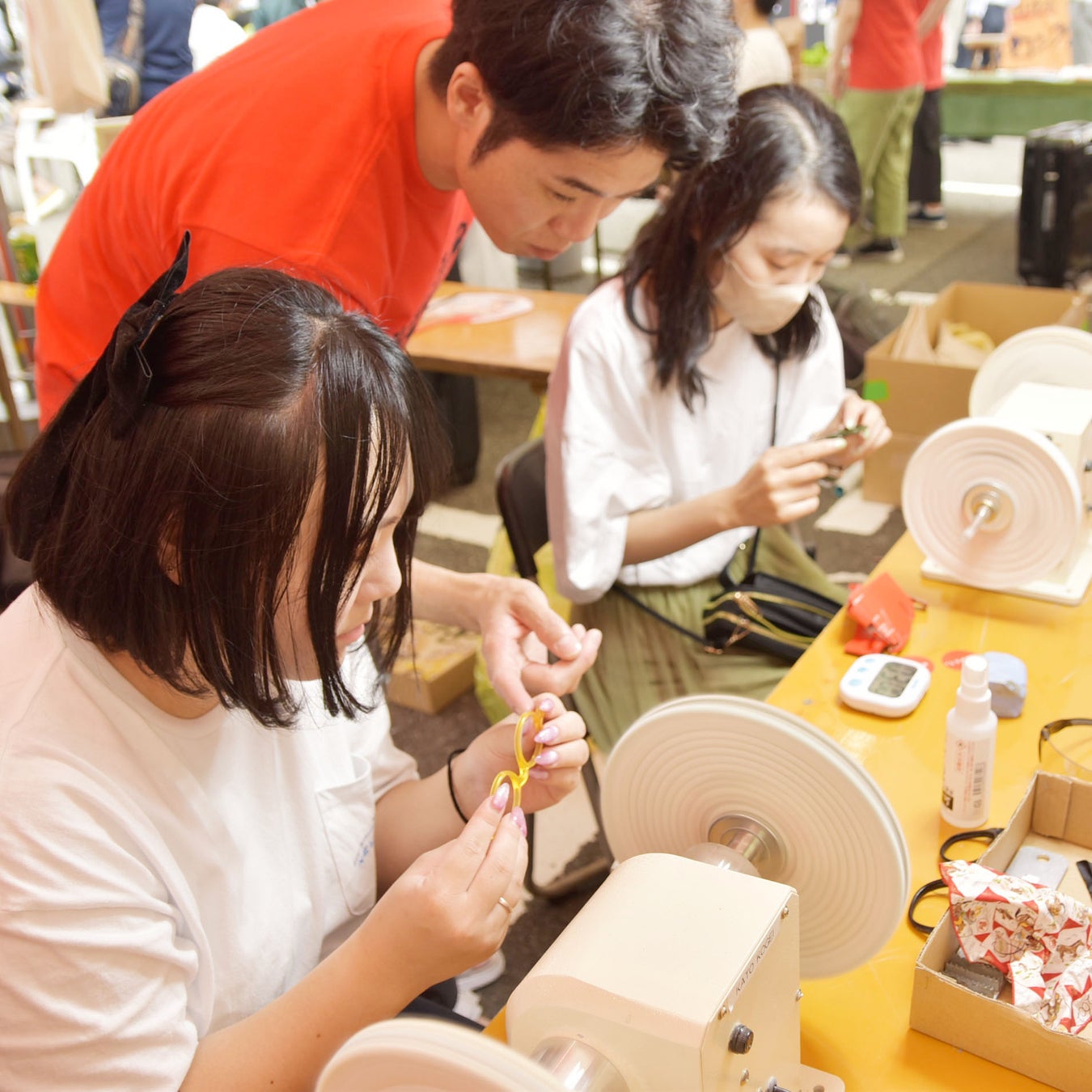 めがねが完成するまでには、フレームを作る企業だけでなく、 それを支える部品やレンズ、機械や道具を作る企業、 加工、修理、材料など、さまざまなプロフェッショナルが関わります。 福井・鯖江は、そんな企業がたくさん集まっている、 まち全体が大きな工場のような産地です。 メガ展では、目が点!になるめがね産地の技術や知恵を、めがねの作り手がブースに立ってご紹介します。