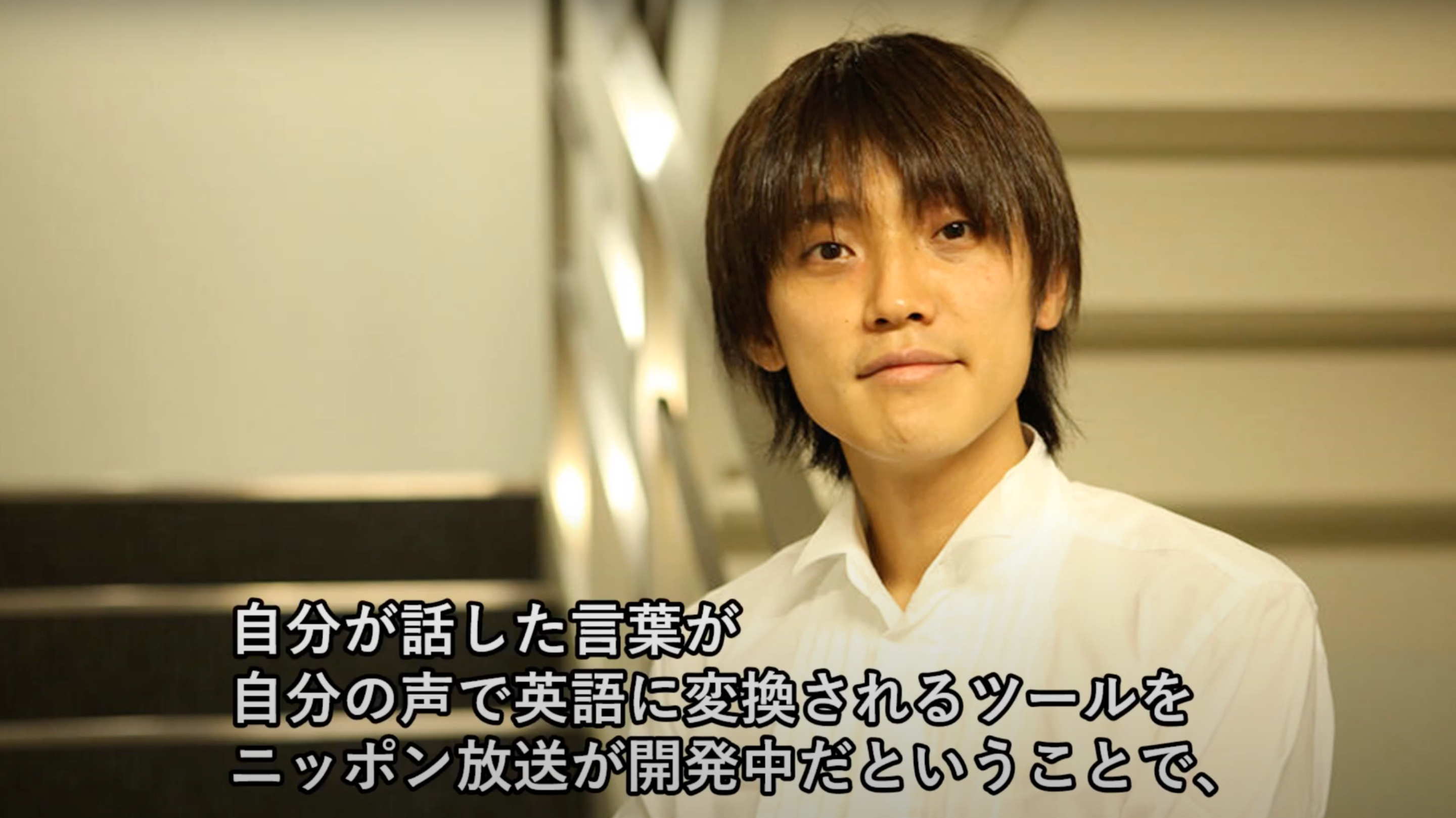 (ニッポン放送アナウンサーの吉田尚記です。今、私はこうして日本語で話していますが、自分が話した言葉が自分の声で英語に変換されるツールをニッポン放送が開発中だということで、デモンストレーション用にしゃべっております。自分が流暢な英語を話している場面はあまり想像できないんですが、果たして結果はどうでしょうか?)