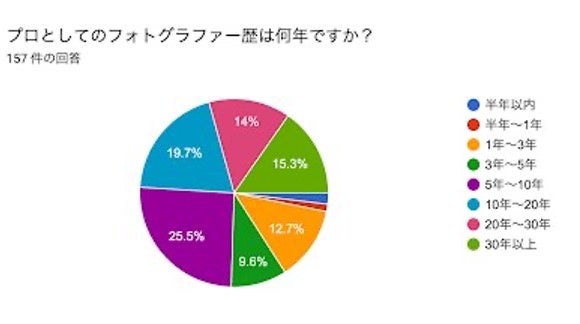 フォトグラファー歴 「プロとしての活動期間は10年を超えている人が半数」