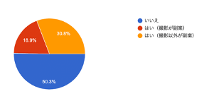 8割以上は本業がフォトグラファー。撮影飲みを仕事にしている方が半数を超え、撮影を副業にしている方は2割弱と、「AMI PHOTO(アミフォト)」に登録しているフォトグラファーは撮影を軸に仕事をしている方がメインになります。