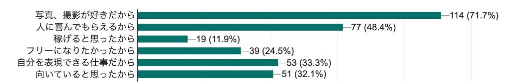 撮影マッチングプラットフォーム登録フォトグラファー159人を対象にアンケート調査