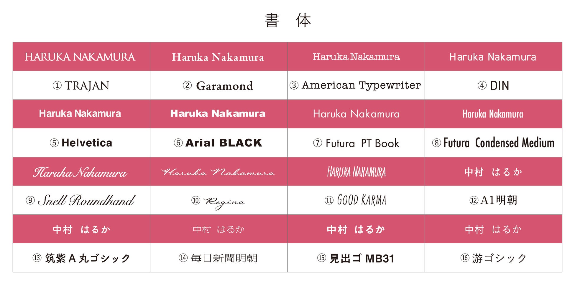 印鑑側面・ケース表面に文字を入れることができます。特殊な印刷方法で文字部分が立体的に浮き出ることにより、指で触れると少し凹凸感が楽しめるテクスチャーになっています。文字書体は普段から慣れ親しまれる書体からユニークな書体まで、さまざまな特性をもった欧文フォント(11)、和文フォント(5)の全16種類からお好きな書体をお選びいただけます。