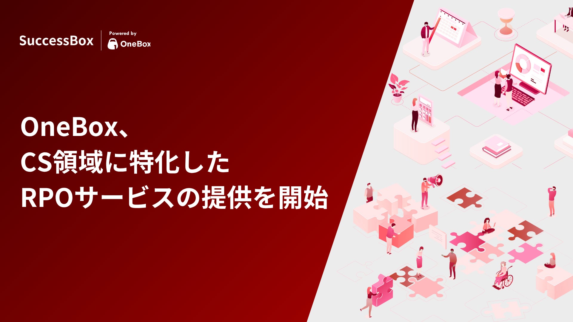 OneBox株式会社(本社:東京都渋谷区、代表取締役社長:伊藤直樹、以下「OneBox」)はこのほど、カスタマーサクセス(CS)領域に特化したBPOサービス「SuccessBox(サクセスボックス)」において、新たにCS職に特化した採用代行(RPO:Recruitment Process Outsourcing)サービスの提供を開始したことをお知らせします。