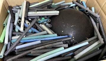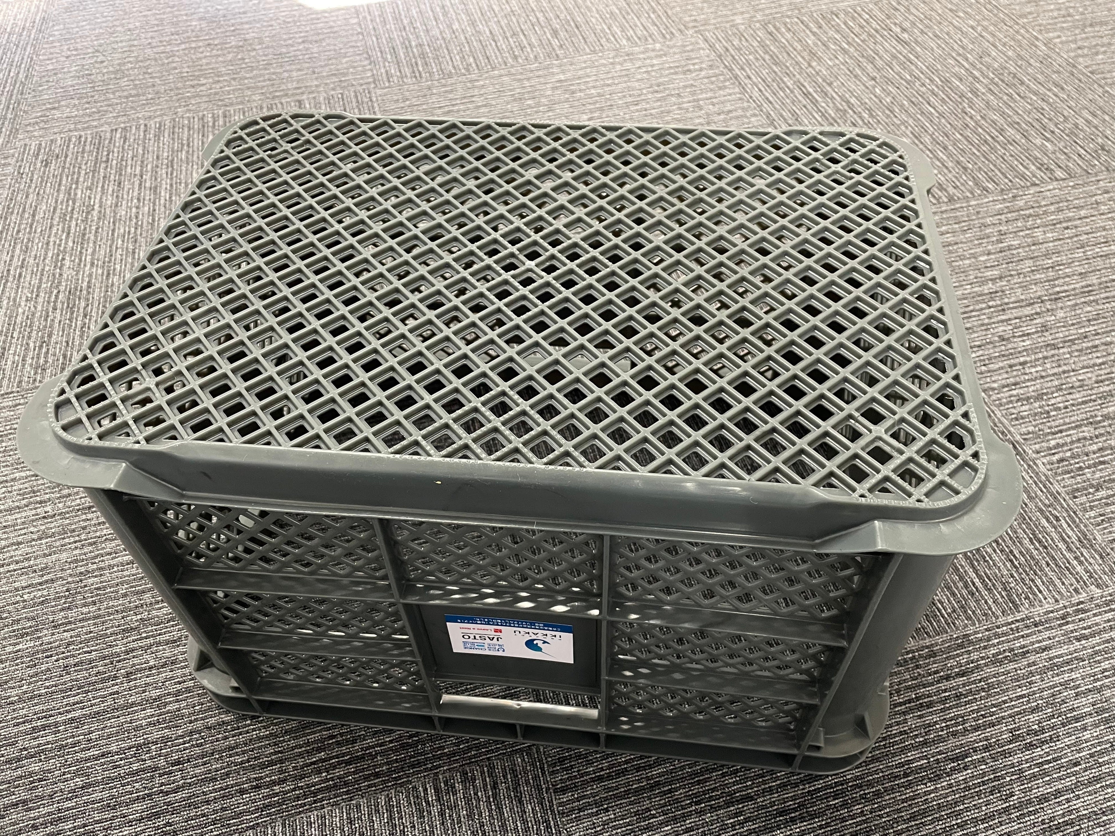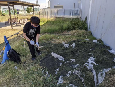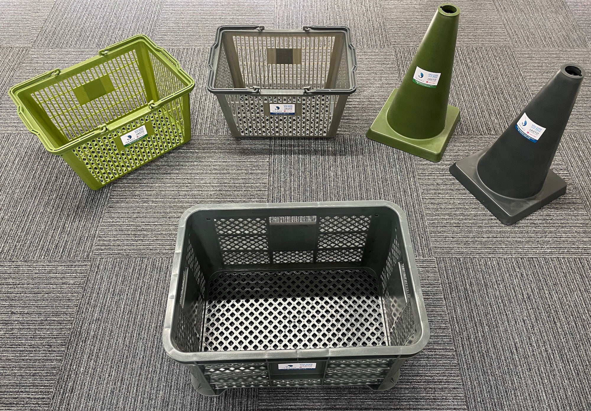 - 牡蠣パイプと人工芝を再資源化し、三角コーン、かごの試作に成功
