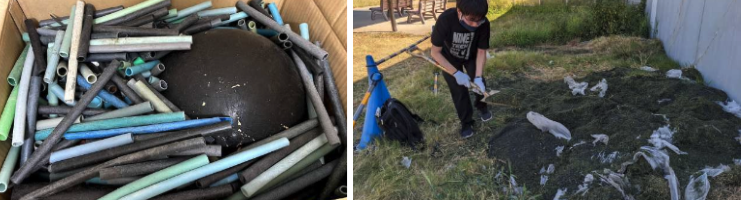 牡蠣パイプと人工芝のアップサイクル製品の試作に成功