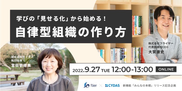 人材プラットフォームの株式会社サイダス(本社:東京都港区/沖縄オフィス:沖縄県那覇市、代表取締役:松田 晋、以下 サイダス)は、累計会員数96万人を突破した本の要約サービス「flier(フライヤー)」を運営する株式会社フライヤーと連携し、「みんなの本棚」の機能をリリースしました。9月6日(火)から提供を開始いたします。